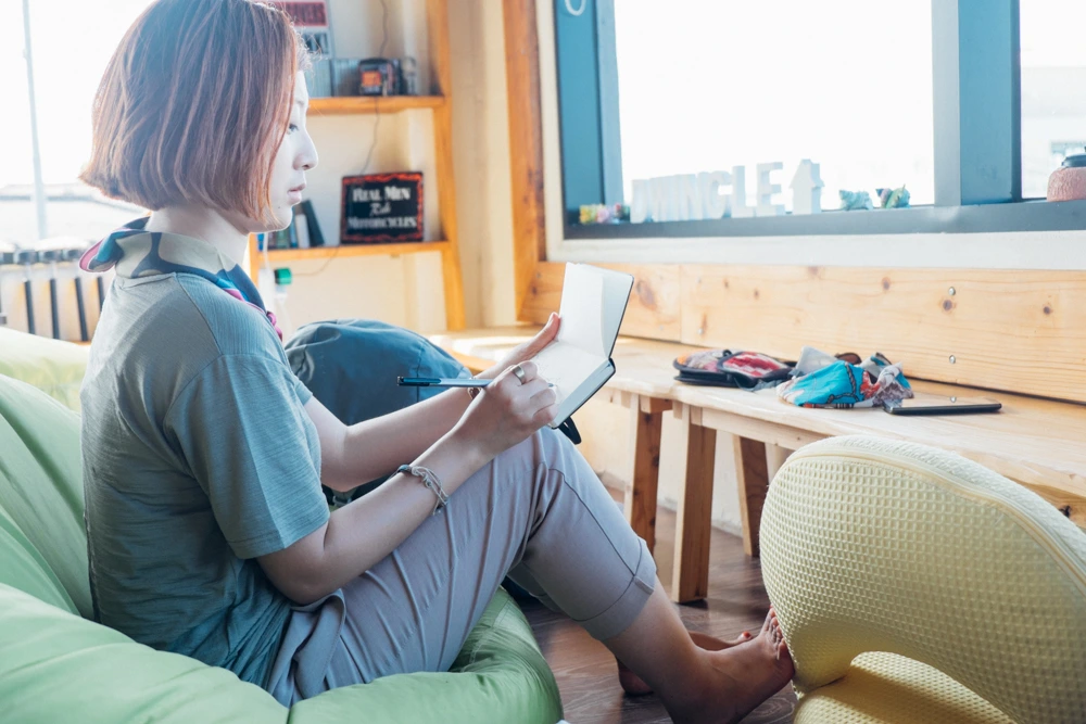 어렵사리 도착한 게스트하우스(뒹글하우스)에서 풍경을 그리며 휴식을 취하고 있는 뚝방이
