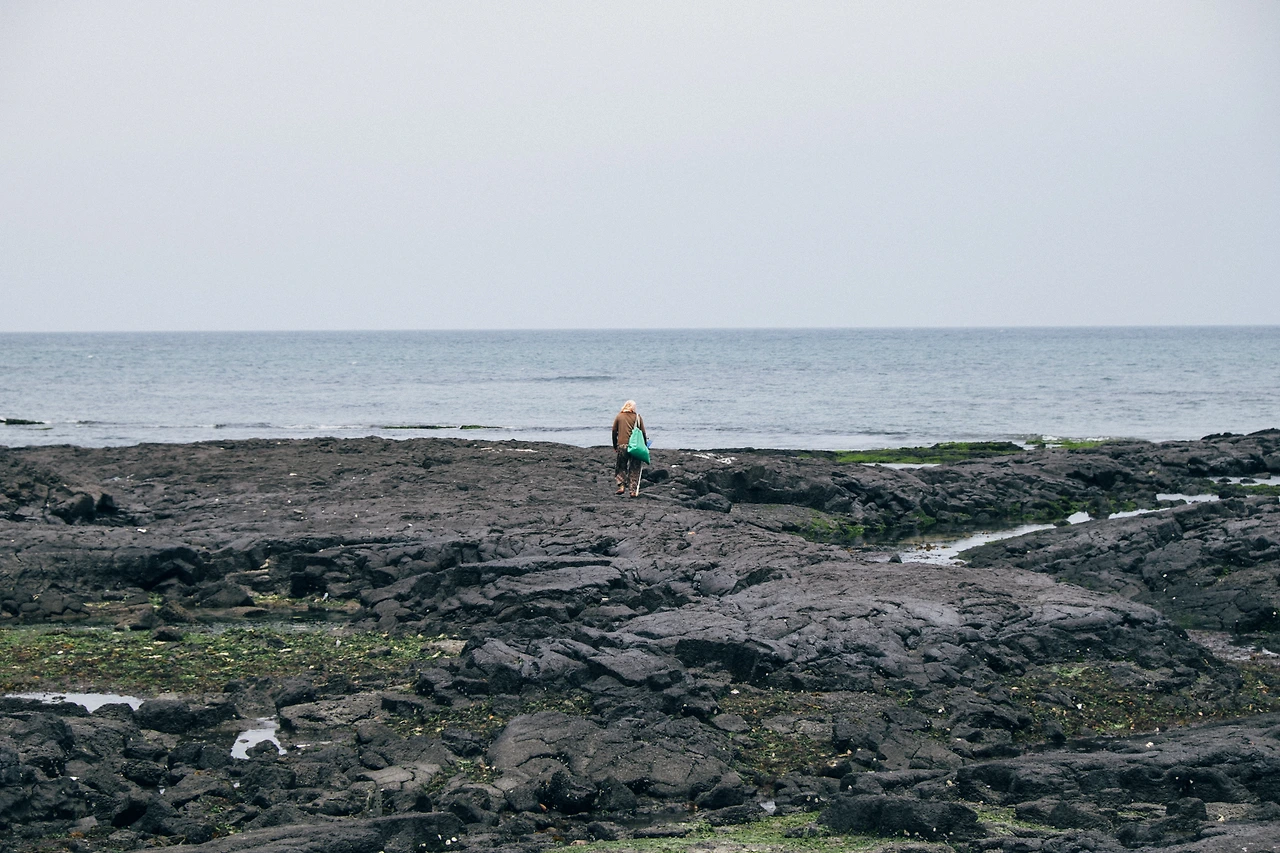제주도엔 현무암이 많아서 이런 검은색 바닥과 돌 무더기들을 자주 볼 수 있다. 내륙에서 흔히 볼 수 있는 풍경은 아니라서 어쩌면 더 이국적으로 느껴지는 지도 모르겠다.