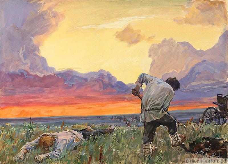 하인이 죽은 파홈의 시신을 땅에 묻으려고 묏자리를 팠습니다.