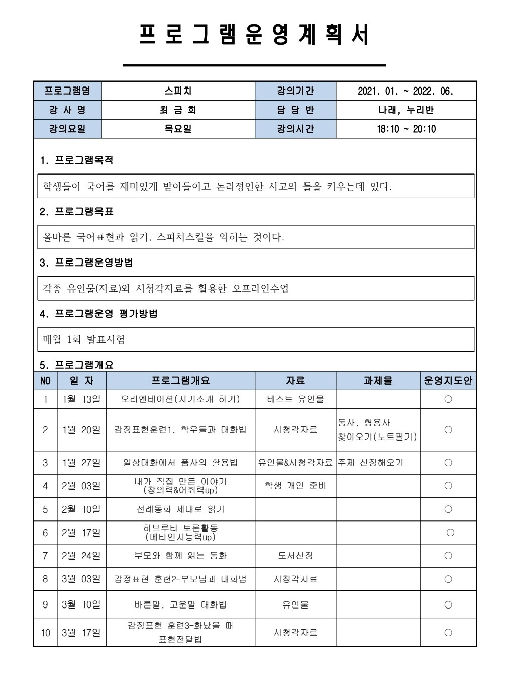 꼼지락 발전소의 담당 선생님의 국어와 스피치를 함께 해달라는 교육 요청과 나의 여러 가지 조사와 방법들을 총동원하여 강의계획서에 대한 일련의 방향을 정했다.