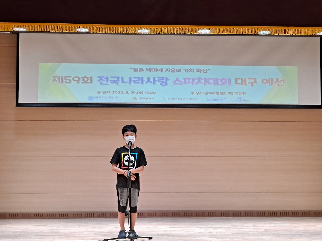 8월에 대통령 배 전국 나라사랑 스피치 대회 공고를 보게 되었다. 공고가 계시된 지 거의 두 달만에 알게 되다 보니 급하게 5명의 참가자를 선발하고 개별 지도해서 예선에 참가시켰다.