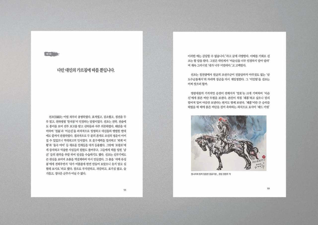 대한민국 국민이라면 누구나 잘 아는 '충무공 이순신 장군'이지만 그에 대한 보다 더 객관적이고 현실적인 이해가 필요했던 '인간 이순신'의 고뇌와 암울한 시대를 살면서 분노를 삭이는 그의 삶 속에 나타난 강렬한 생사관의 저변에는 우리 민족 특유의 심미안과 감성으로 가득 차 있음을 화가이자 명상가인 저자의 예술가적 솜씨를 실감케 하는 날카로운 문체와 유려한 그림으로 그려내어 인물이 등장하고 사건이 전개되는 역사서 전통의 경계를 무한히 확장해 430여 년 전, 이 땅에서 벌어졌던 동아시아 삼국 전쟁의 소용돌이 속에서 알려졌지만 이해되지 못했던 역사적 과제를 인식하고 대한민국 현재의 시대 과제 앞에 사실을 따르면서도 결코 진부하지 않은 감수성과 때로는 의표를 찌르는 전개를 통해 위기와 역경을 이겨낸 '이순신 장군'의 리더십과 경영 철학을 체계적으로 발굴.해설한 지혜의 메시지가 담긴 작품을 소개합니다.