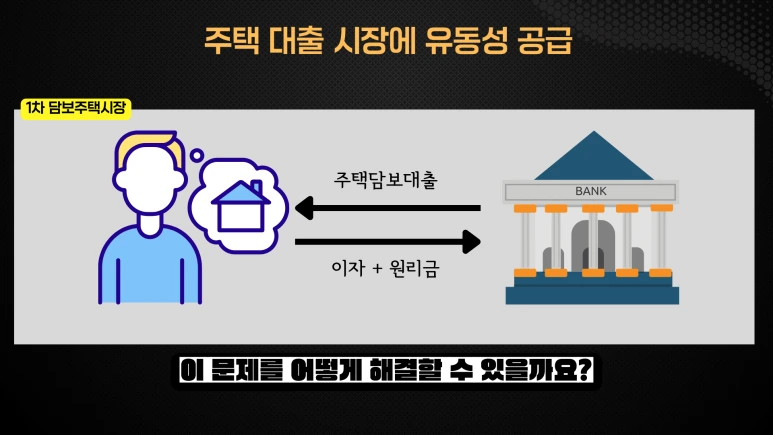 일반적으로 1차 주택 담보대출 시장에서 돈을 빌려주는 주체는 은행입니다. 주택을 구입하고자 하는 사람은 은행에 주택 담보대출을 요청하고, 은행의 대출을 통해 주택을 구입합니다. 문제는, 집을 사고 싶은 사람이 많지만, 은행이 충분한 자금을 보유하지 못하고 있다는 점입니다.