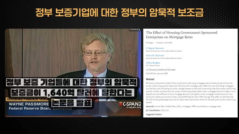 정부 보증을 받는 패니 메이가 과도한 이익 추구에 나서자 시장에서는 우려의 목소리가 커지기 시작했습니다. 주택 담보대출 시장의 경쟁자인 대형 은행들은 패니 메이가 받는 정부의 특혜가 부적절하다고 비판했습니다. 또한, 비영리기구들은 패니 메이가 그 원래의 목적을 상실하고 금전적 이득에만 몰두하고 있다고 지적했습니다. 2003년 말, 연방준비은행의 경제학자 Wayne Passmore는 정부 보증 기업들에 대한 정부의 암묵적 보증금이 1,640억 달러에 달한다는 연구 결과를 발표했습니다. 이 연구는 특히 패니 메이에 대해, 그 보조금이 주택 소유나 건설의 증가에 기여하지 않고 주택 담보대출 비용을 낮추는 데도 실패했다고 지적하며, 이러한 특혜가 중단되어야 한다고 주장했습니다.