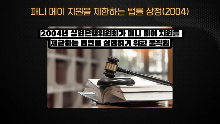 이러한 비판에 힘입어, 2004년 상원은행위원회는 패니 메이에 대한 지원을 제한하는 법안을 제출하려 했습니다.