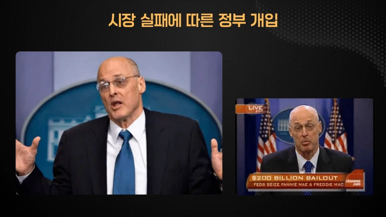 패니 메이의 몰락을 수습하기 위해 미국 정부는 2008년 9월에 전례 없는 조치를 취했습니다. 재무부 장관 행크 폴슨은 패니 메이의 지휘권을 장악하고 2000억 달러의 천문학적인 자금을 투입하겠다고 발표했습니다.