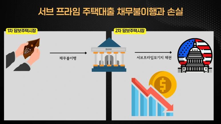 이 과정에서 저소득 주택 소유자들의 채무 불이행이 계속됨에 따라 주택 담보대출을 뒷받침하는 증권인 MBS의 가치가 급격히 하락했습니다. 이로 인해 패니 메이는 치명적인 손실을 입었습니다.