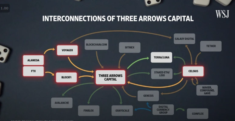 암호화폐 업계에 있는 회사는 서로 밀접하게 얽혀 있습니다. 암호화폐 업계 내 회사가 다른 회사에 자금을 빌리고 빌려주며 거래 상대방이 되어 거래를 합니다. 최근 파산한 5개 회사를 보면 암호화폐 업계가 얼마나 밀접하게 관련되어 있는지 알 수 있습니다.