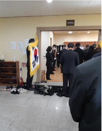 그들은 태극기를 들고 일제히 도열하였다.