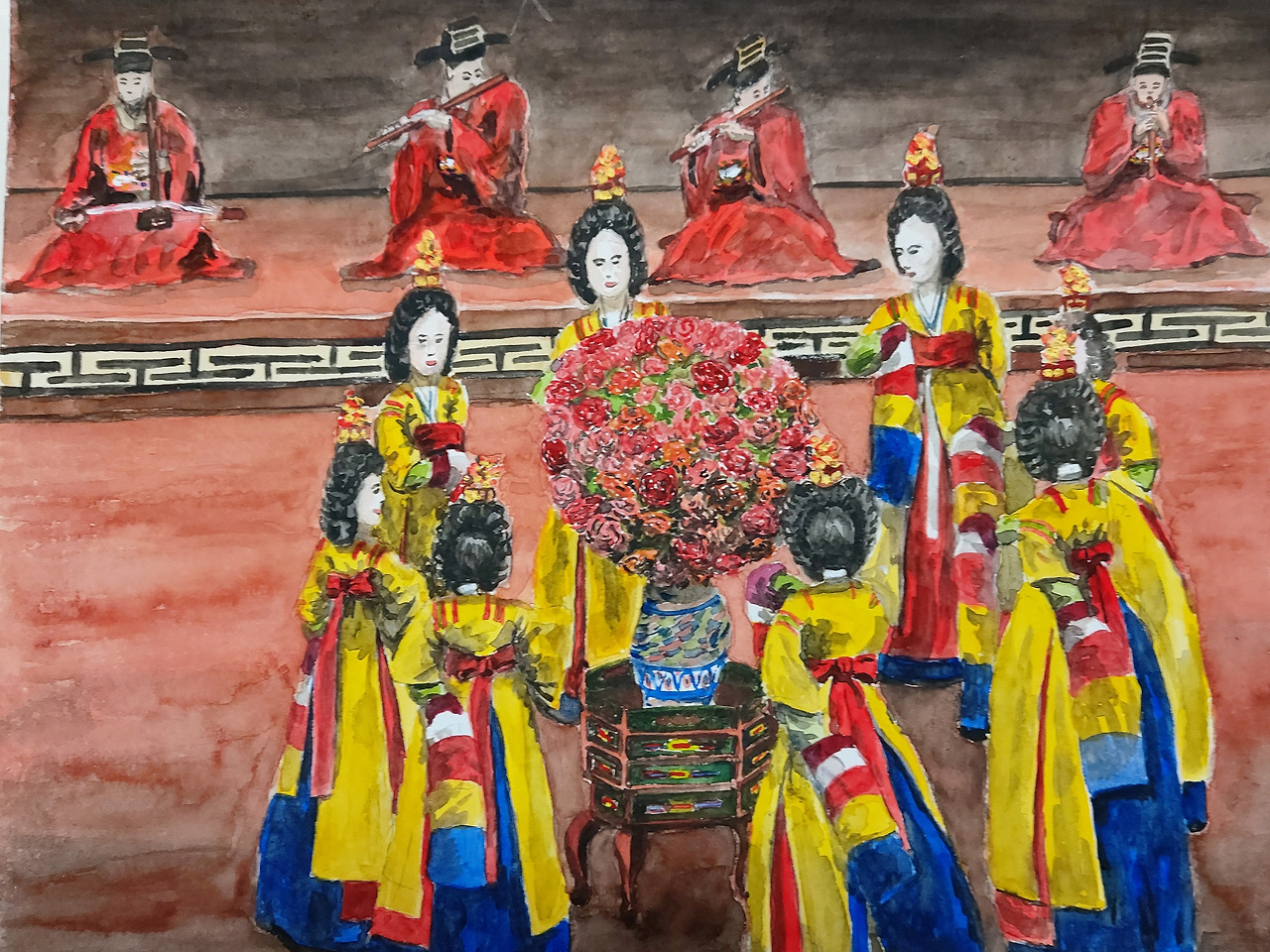Royal Salute Series no.32 궁중무 가인전목단 Watercolor 40x30 artist 화가경영학자