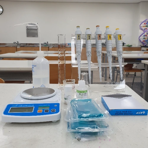 우리 학교는 4월 말에 하루동안 학교자율과정을 운영한다. 1, 2학년은 외부강사를 초청해서 진로특강을 하지만, 3학년은 교과교사가 강의를 개설하고 아이들이 신청하는 방식으로 진행된다. 나는 이 기회를 이용해 간단한 실험 수업을 해보기로 했다. 초보 교사가 가장 쉽게 할 수 있는 실험수업은 완성된 키트를 사용하는 것이다. 생물나라에서는 DNA 전기영동을 활용해 모의 수사를 하는 실험키트를 구매할 수 있다. 간단한 스토리지만 아이들도 재미있게 해 볼 수 있고, 마이크로피펫 사용법과 전기영동의 원리를 포함해 분자생물학 실험의 기초를 학습할 수 있는 좋은 교재다. 아무리 키트가 있다한들 필요한 기기가 없었다면 힘들었을 테지만, 작년 수리과학부장님께서 그동안 원심분리기, 볼텍스 믹서, 전기영동 기기, PCR기기, 일루미네이터, 등등 많은 기자재들을 구비해 두셨기에 장비의 제약 없이 수업을 진행할 수 있었다.