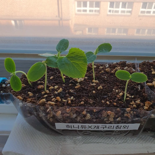 또 한 가지는 멜론 잡종 교배 실험이다. 작년 동기모임에서 식물 분류와 교배에 일가견이 있는 대학 동기가 학교에서 멜론을 키워보지 않겠냐며 씨앗을 건네줬다. 내용인즉 동기가 획득한 잡종 식물의 형질을 관찰하고 또 다른 품종과의 교배를 통해 새로운 잡종을 만들어보라는, 꽤나 심도 있는 연구다. 바로 제안을 받아들이고는 이를 학급특색활동으로 기획했다. 씨앗부터 열매까지 한 사이클을 자세히 관찰해야 하는 장기 프로젝트라 식물을 죽이지 않고 길러내는 것이 관건이다. 처음 심었을 땐 예상보다 발아가 늦어 걱정하기도 했지만 아직은 탈 없이 잘 자라고 있다. 앞으로 텃밭에 옮겨 심고 새와 해충으로부터 이 녀석들을 보호하며 키워야 하니 갈 길이 참 멀다. 성공을 장담할 순 없지만, 다 떠나서 학급에 화분 하나 기르는 것이 아이들 정서에는 도움이 되겠지. 에라 모르겠다.