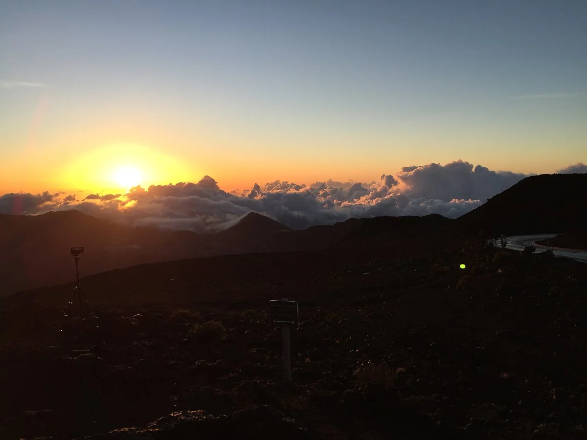 보통 마우이를 간다고 하면 할레이칼라에서 일출을 보기 위해 간다. 하와이 말로 '태양의 집'이라고 불리는 이 휴화산에서 일출을 보려면 새벽 3시부터 부지런을 떨어야 한다. 일출 시간이 6~7시 사이인데 호텔에서 산까지 가는 것도 시간이 꽤 걸리기 때문이다. 일출을 보기 위해서 전날 밤에 일찍 잠들어야 하고 잠이 덜 깬 상태로 부지런히 산까지 가야 하는 수고로움이 여간 귀찮은 게 아니다. 정상으로 가는 산 길이 얼마나 구불거리던지, 비위가 약한 나는 올라가는 내내 멀미가 났다. 어지럽고, 정신이 하나도 없다. 더 놀라운 사실은, 산 위는 한겨울 뺨치게 춥다는 것이다! 하와이인데 왜 할레이칼라는 추운 거죠? 투덜거릴 수밖에 없지만, 일출을 보는 순간 모든 불만이 눈 녹듯 사라지게 된다.
