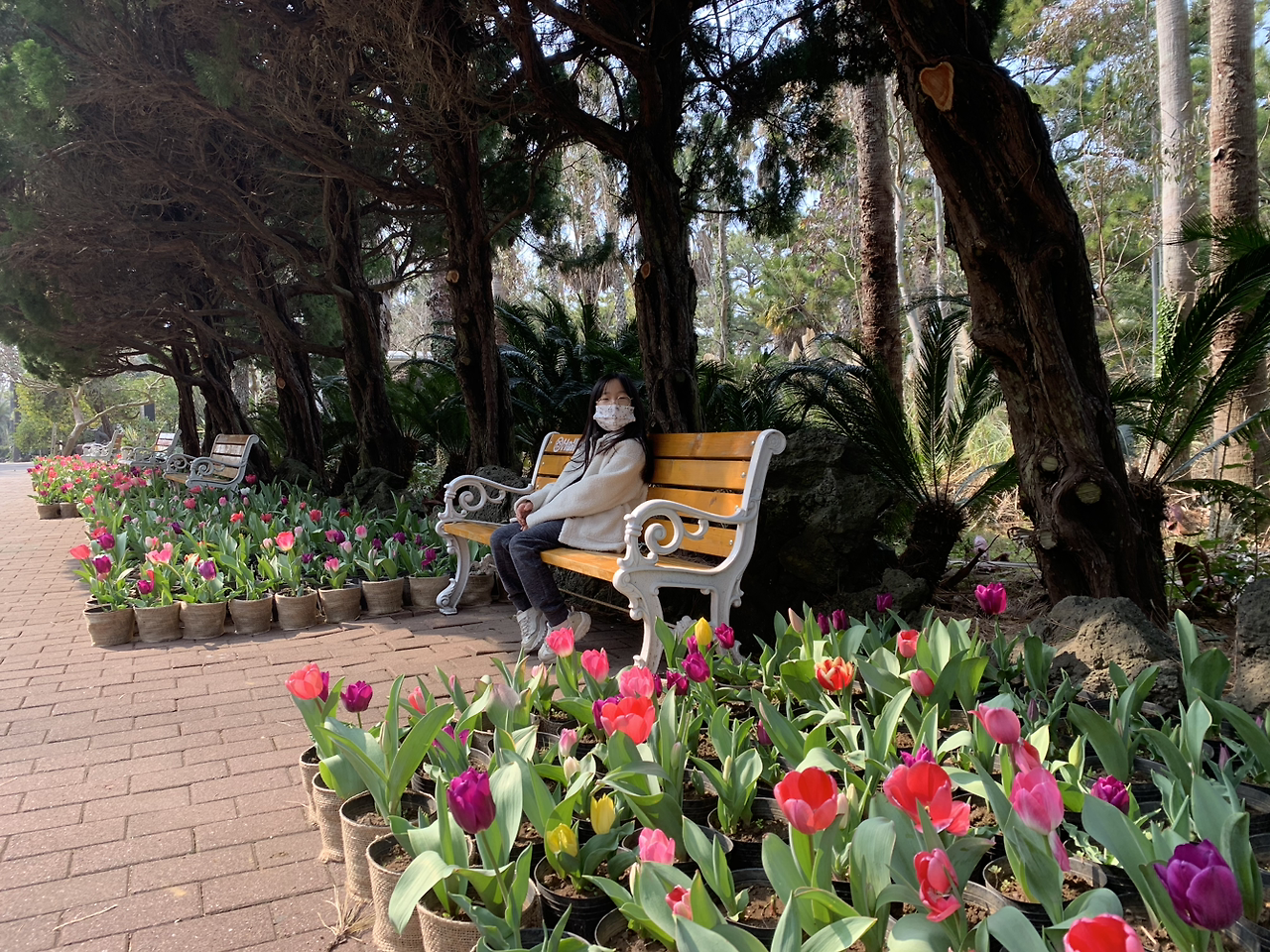아직은 3월의 초입이라, 한림공원은 매화축제가 막바지이지만 여기저기에 미리 심어둔 튤립들이 빛나고 있었다. 열매도 꽃도 없지만 푸릇푸릇한 새 잎 만으로도 빛나는 나무들이 있어 행복했다. 공원 곳곳을 걸어 다니는 우아한 공작새도 큰 재미를 주었다.