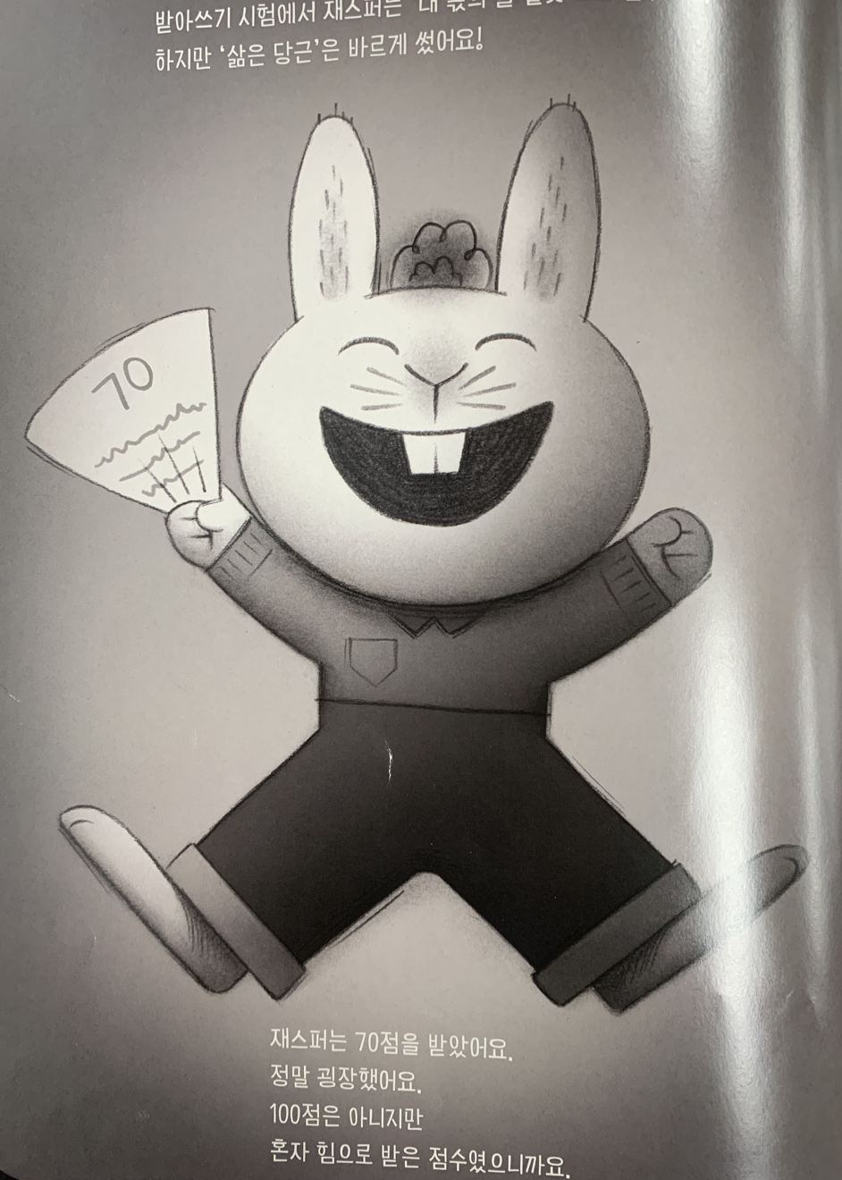 이 시리즈의 주인공인 토끼 재스퍼는 갓 학생이 된 귀여운 1학년 독자들과 같은 처지입니다. 좋아하던 당근에서 문득 공포를 느끼는 모습에서는 성장해 가는 아이들의 모습을 엿볼 수 있습니다. 수면 독립이 참 어려운 아이들에게 오싹오싹 팬티가 주는 두려움에 대한 공감과 극복은 카타르시스가 느껴지지요. 학업 스트레스가 생겨나기 시작하는 학생 재스퍼가 만난 크레용은 우리 아이들의 고민이 묻어나는 선망의 대상이 아닐까 싶습니다.