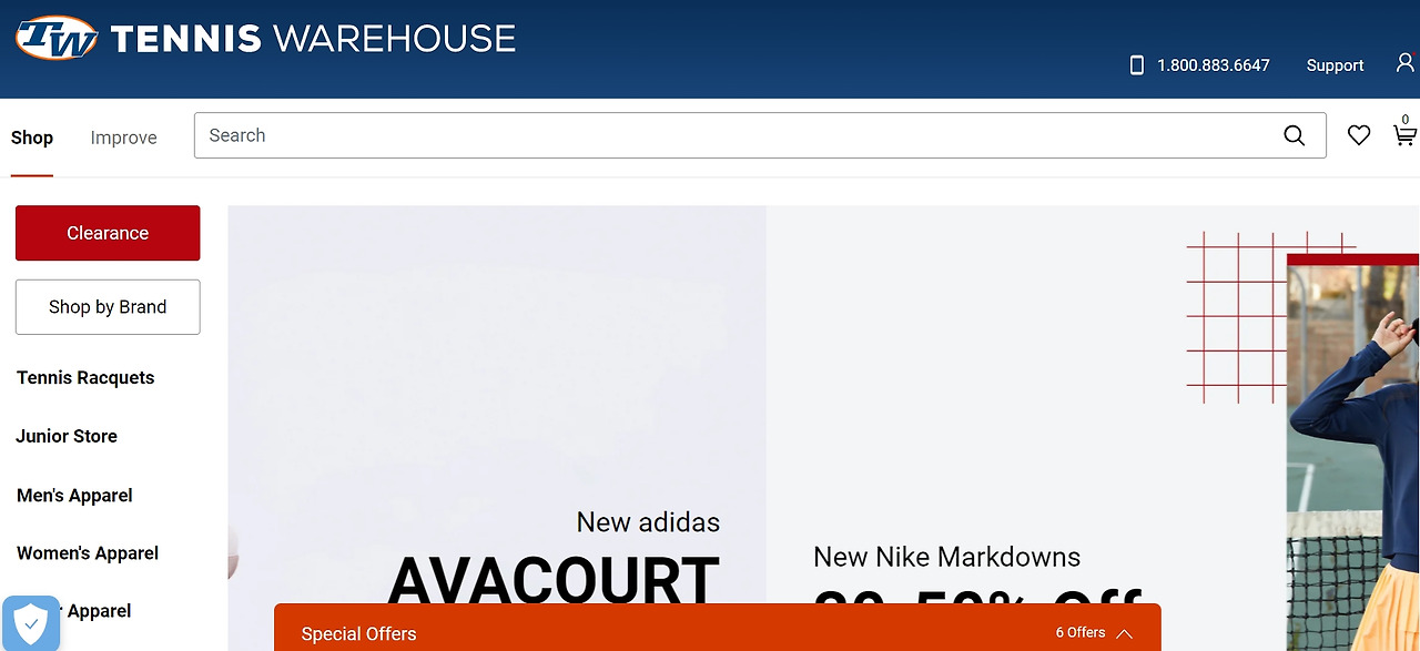 대표 테니스 직구 사이트 중 하나인 테니스웨어하우스. (사진=홈페이지 캡처)