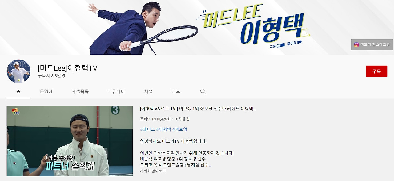 전(前) 테니스 선수 이형택의 유튜브 채널 '머드Lee'. (사진=이형택 유튜브)