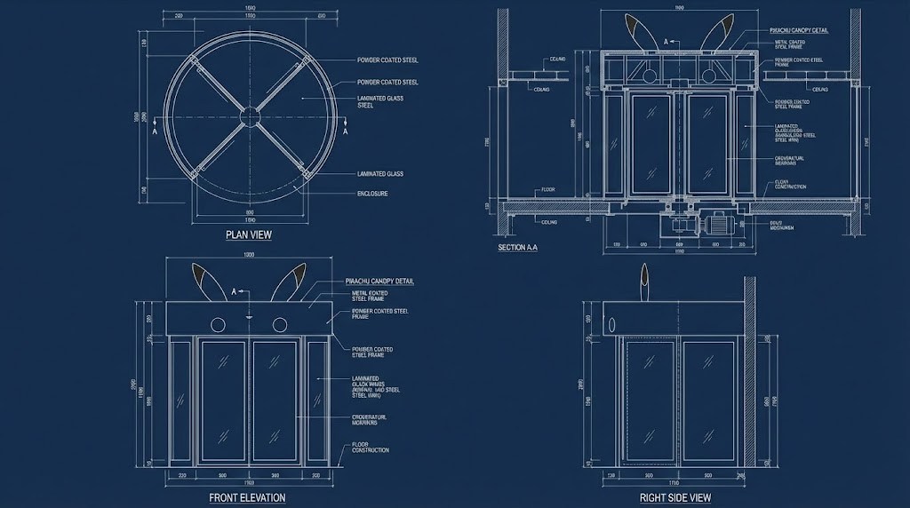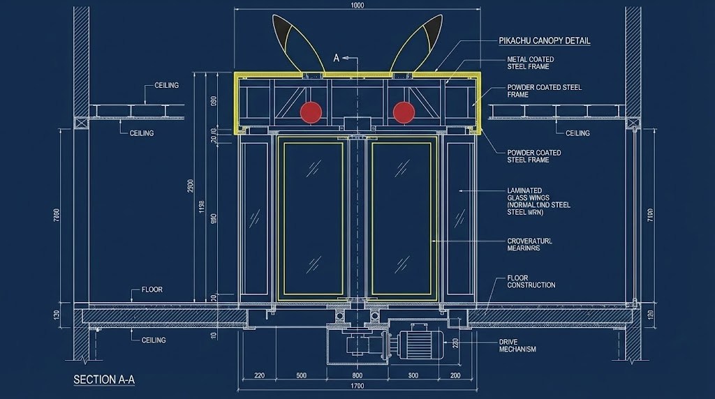 실제 치수는 포함되어 있지 않지만, 결과물은 충분히 놀라웠다. 중심선, 단면선, GL이 정확히 표현되어 있었고, 원본 이미지에는 존재하지 않던 구동계까지 그려져 있었다. 창문 표시와 구조를 지지하는 요소까지 포함되어 있었다. 이 정도면 시공은 몰라도 3D 모델링은 바로 가능할 수준이었다.