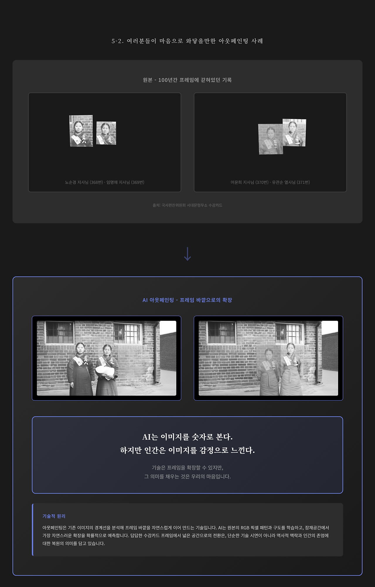 엄밀히 따지면 인페인팅과 아웃페인팅의 원리는 비슷하다. 다만 인페인팅은 말 그대로 in, 이미지의 안쪽을 복원하는 개념이고, 아웃페인팅은 out, 이미지의 외곽을 확장하는 기술이다.
