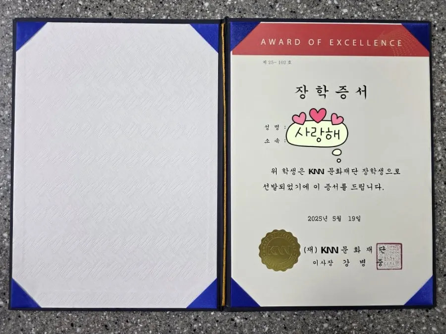 "어딘지 대단하다. 아이들 장학금을. 우와~!"