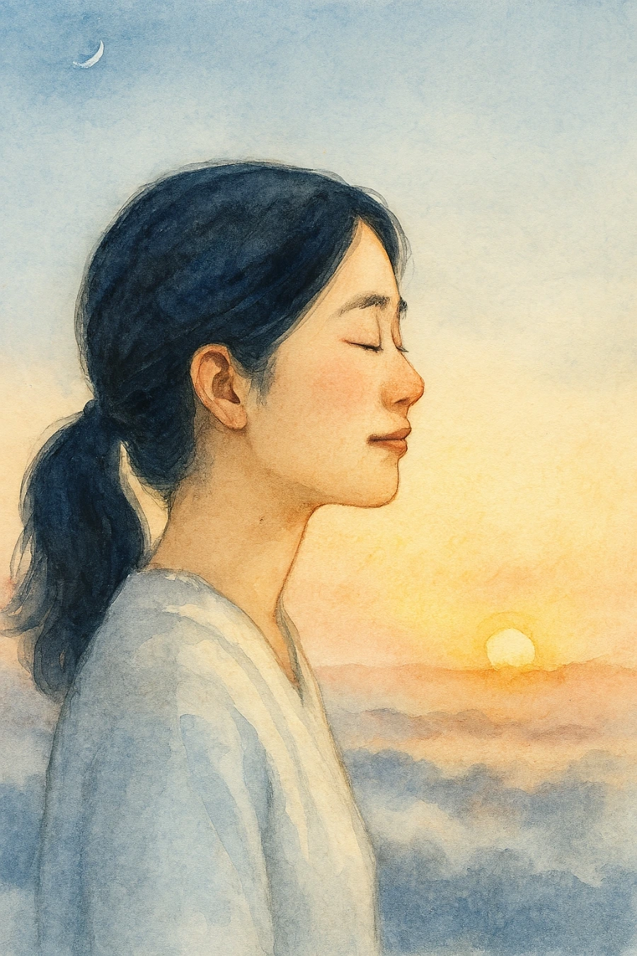 황금색 오렌지빛이 천천히 솟아오릅니다.