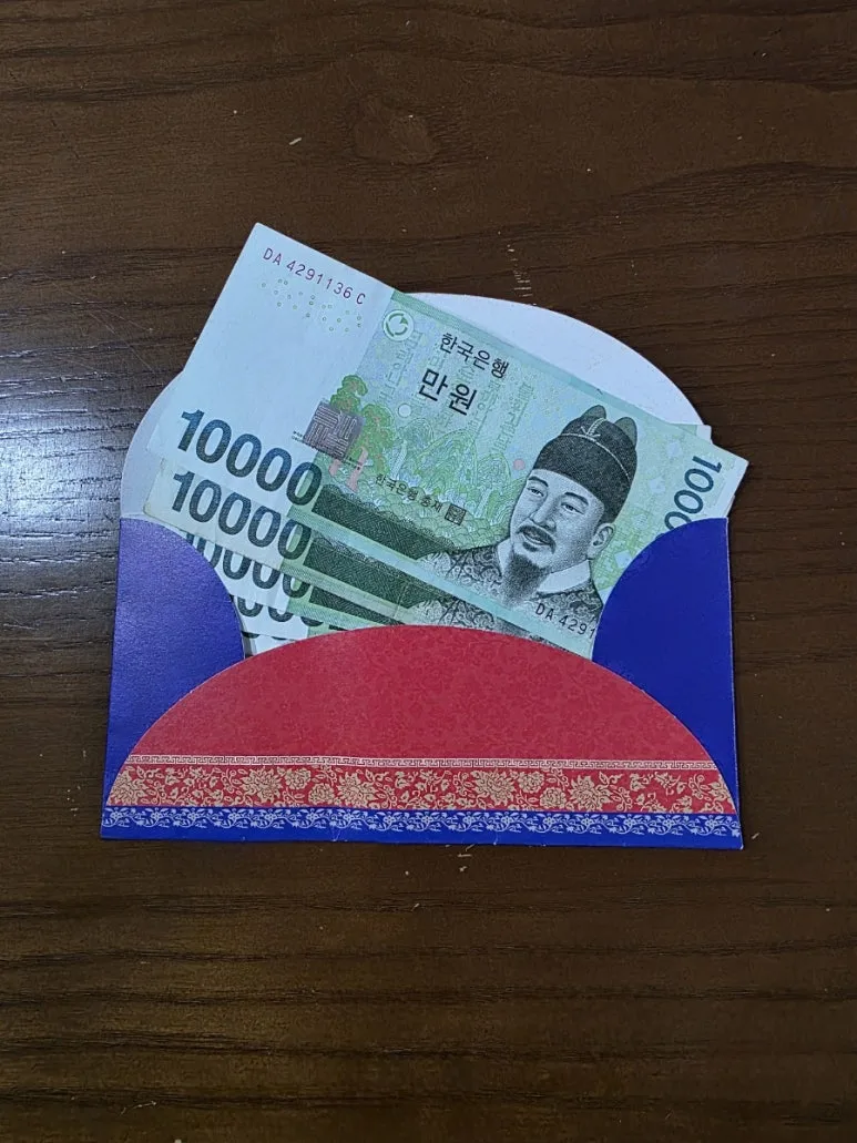 예쁜 한복을 차려 입은 봉투를 손에 쥐어준다. 봉투마저도 너무 소중해 한참을 들고 눈시울 붉힌다.