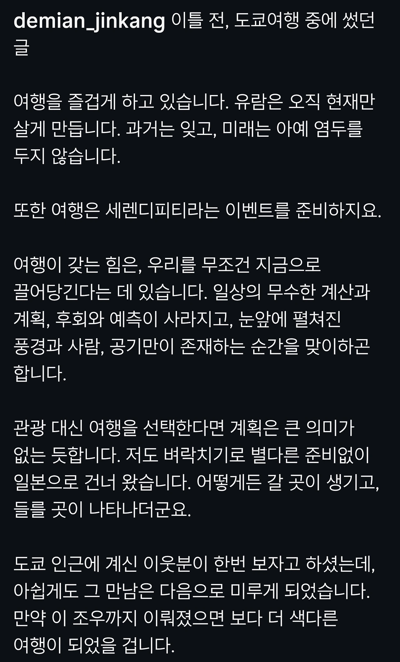 이 글을 쓰게 된 계기는 데미안님의 인스타에 게시된 바로 이 글 때문입니다.