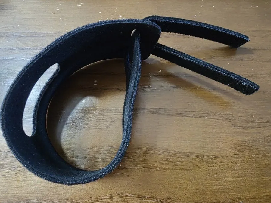 보호대 끈을 이음새에 끼우고 동그랗게 만든 다음 그 사이에 손을 넣고 줄을 당겨서 손목에 딱 맞게 찍찍이를 붙여야 한다. 그런데 지금 그것이 안된다는 것이다.