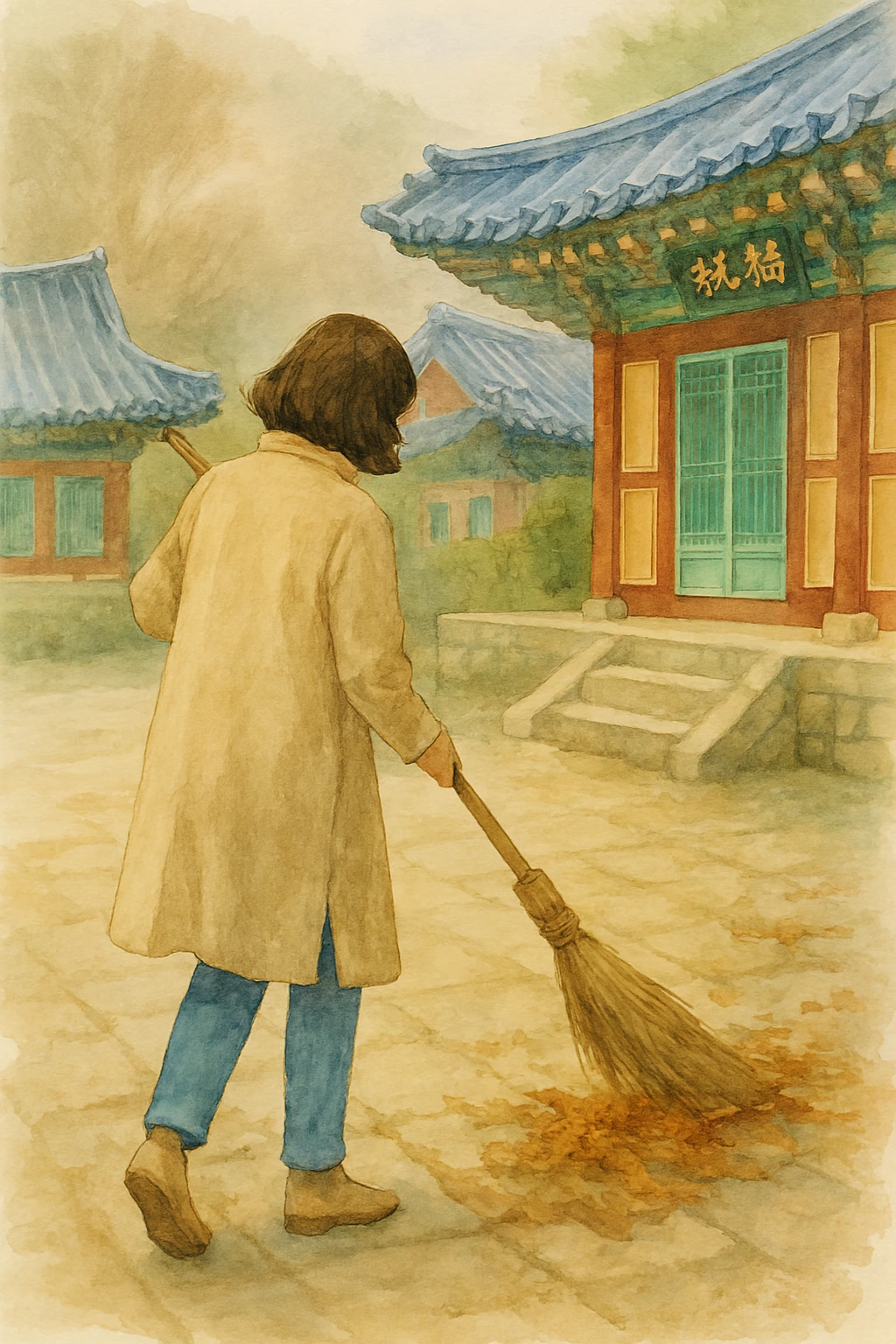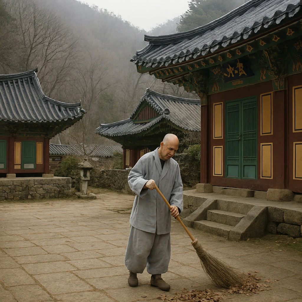 경내 청소를 하는 등 기계처럼 움직이며