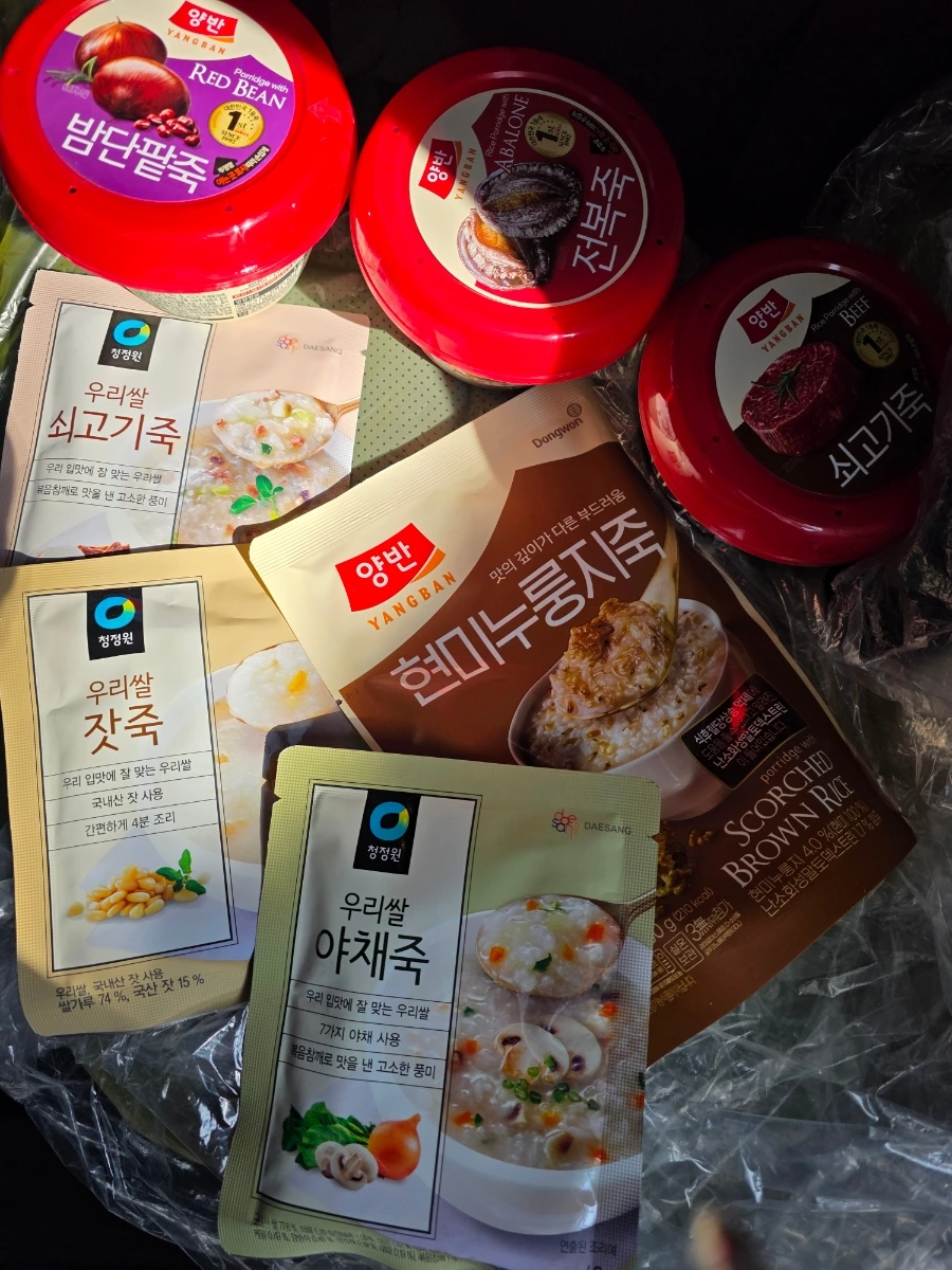나름 고심해서 마트에서 종류별로 죽을 사온다.
