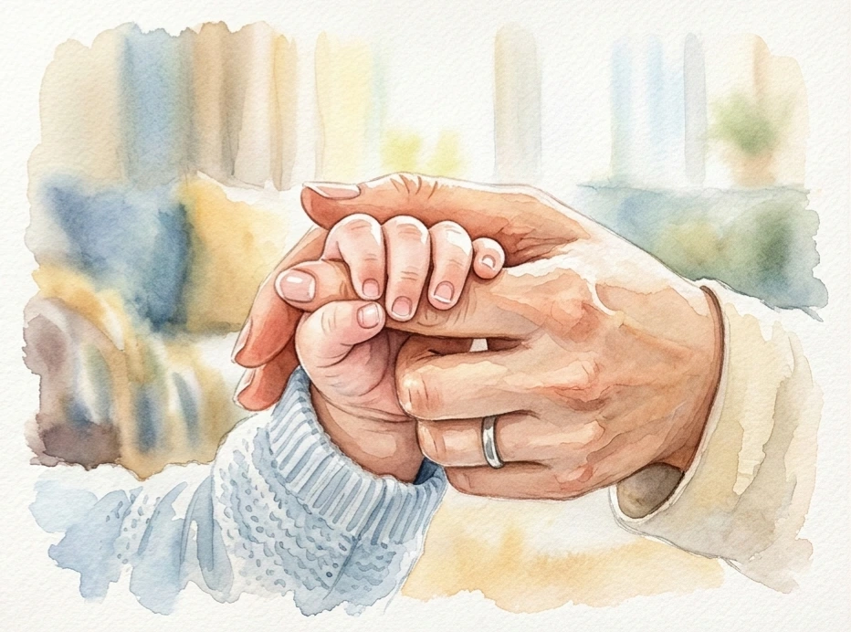 아이의 손을 잡는다.