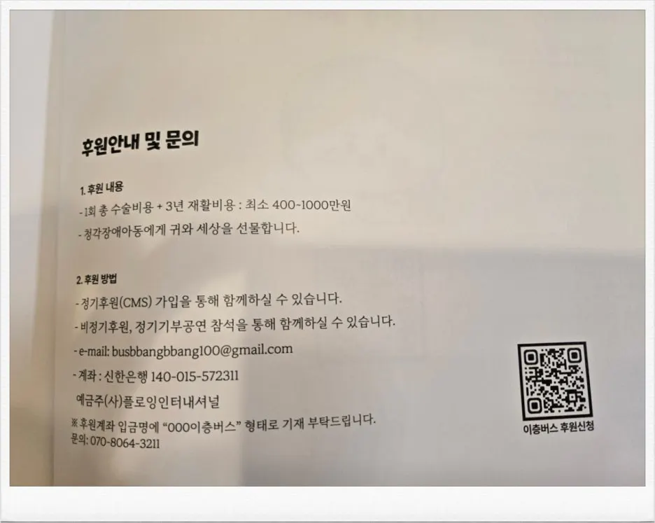 - 청각장애 아동 인공와우 수술비 지원, 밴드이층버스에 기부하다 -