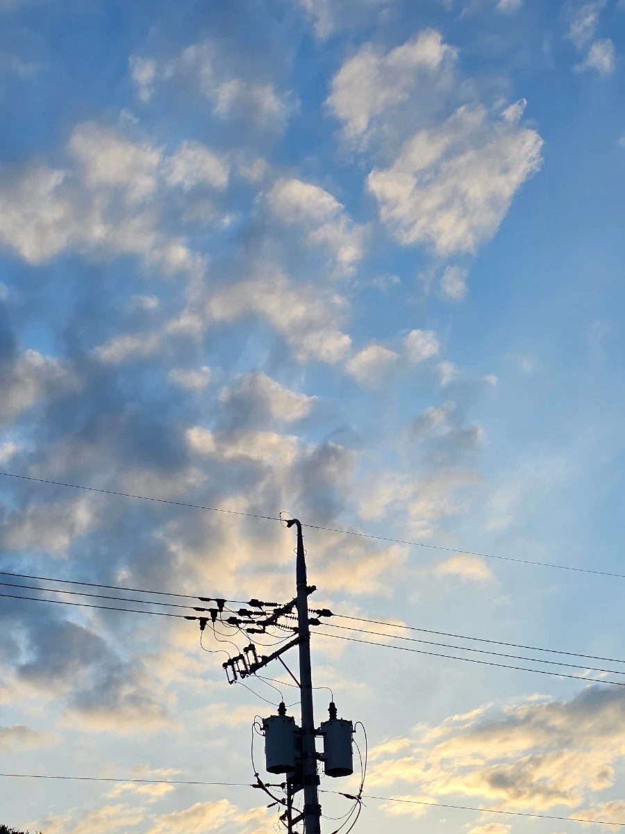 "어쩔 수 없잖아. 없앨 수도 없고. 전깃줄 없으면 우리가 어떻게 살겠어. 함께 살아야지! 그러니 달리 생각하는게 낫지 않겠어?"