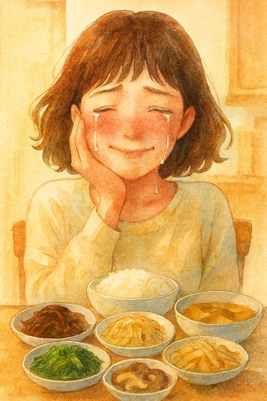 한 숟가락 크게 떠서 입에 넣으며 얼마나 맛있는지 자랑한다. 꺼지지 않는 배에 저녁을 먹지 않으려던 엄마도 아이가 비빈 나물밥으로 숟가락을 옮긴다.