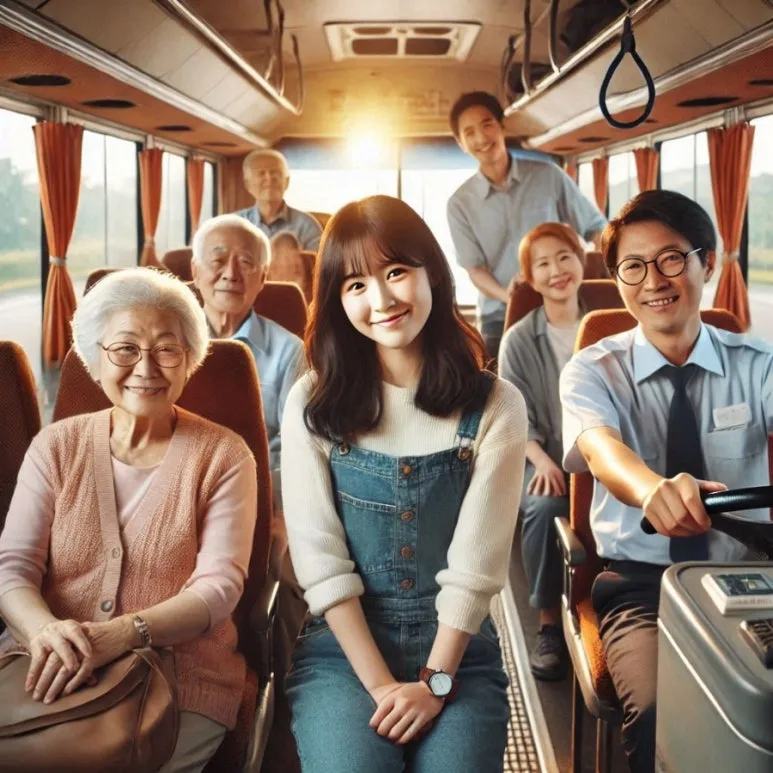 서서 갈 수 없으니 누구 한 명은 내려야 할 상황, 당연히 잘못 앉은 아주머니가 내려야 한다. 아주머니는 안절부절이다. 버스 짐칸에 짐이 많아 내릴 엄두를 못 낸단다. 버스 기사님도 짐을 같이 실었기에 그것을 알고 내리라는 말을 제대로 하지 못한다. 그렇게 시간이 가다 학생이 다음 차를 타겠다며 내린다. 다음 차가 얼마 후에 있는지 알지도 못한 채 기꺼이 자신의 자리를 내어놓는다. 그곳에 더 많은 행복으로 채워진다.