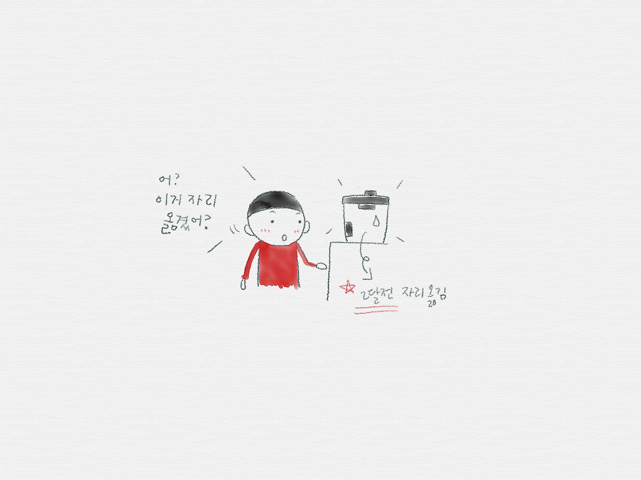 “엄마, 전기밥솥 자리를 옮겼어?”