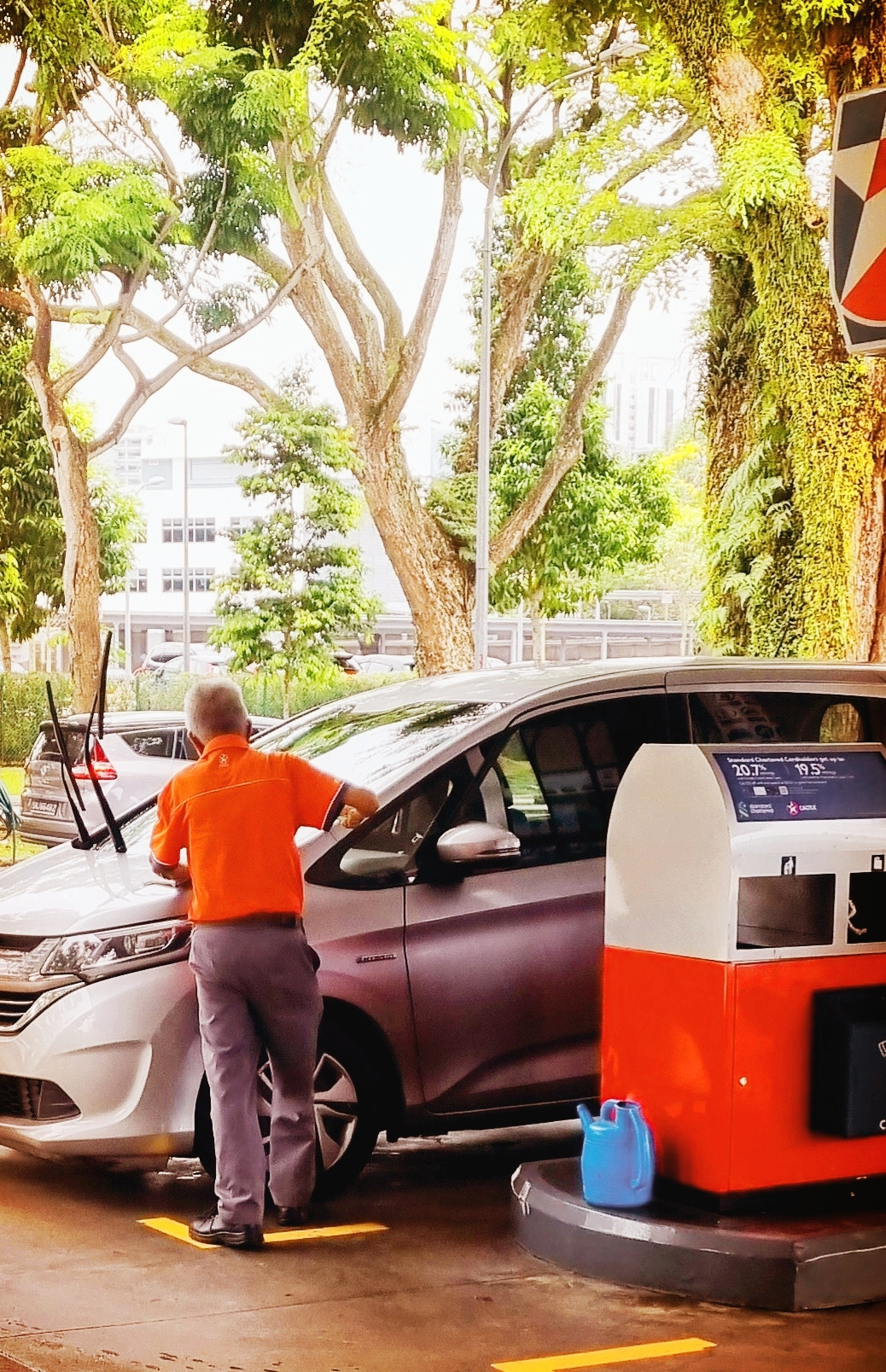 참고로.. 싱가포르 주유소는 직원에게 원하는 기름 종류와 얼마만큼의 기름을 넣을 건지 리터 단위나 금액을 알린 뒤, 주유소 내 상점 안에 들어가 기다리다가 주유가 끝나면 나온 금액을 지불하는 시스템이에요. 선 주유 후 지불 방식인 거죠. 이때 내 차가 몇 번에서 주유 중인지 번호를 확인해야 해요.