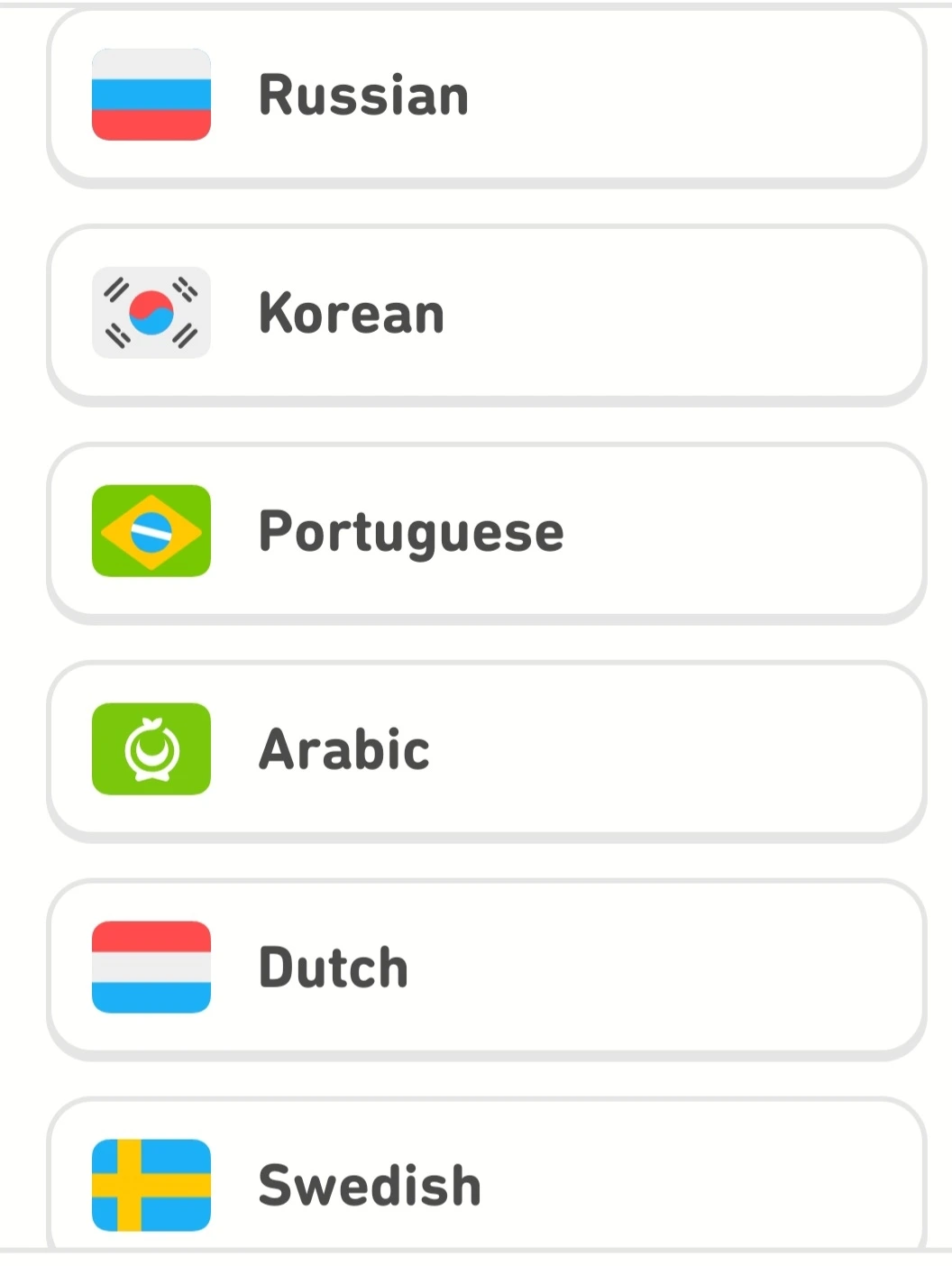 아이가 재밌다니 어떻게 재밌는 건가들여다봤다. 보다가 깜짝 놀랐던 건.. 영어로 공부하는 사람의 경우 배울 수 있는 언어의 종류가 무려 39개나 있다는 거였다. 세상에 이렇게 많은 다양한 언어가 있다니..