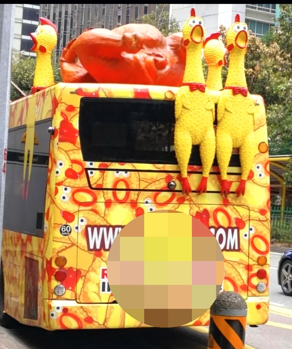 " 저 닭들이 왜 버스 위에 있어요? "