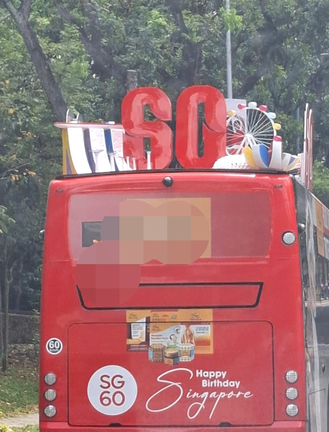 올해 건국 60주년이 된 싱가포르는 기념비적인 해도 버스 위에 광고로 싣고 달린다.
