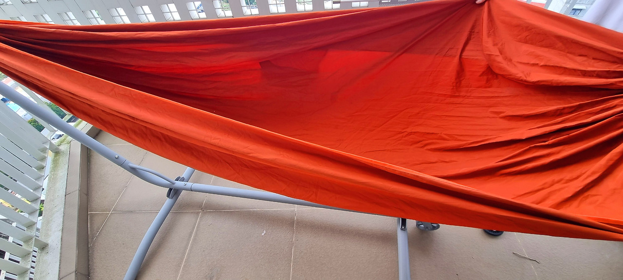 코로나 팬데믹이 한참 심하던 시기, 집에서 보내는 시간이 많아졌을 때.. 아이들을 위해 구입했던 해먹은 뜨거운 싱가포르 태양을 간과한 탓에 몇 번 써보지도 못하고 자리만 차지하고 있었다. 해먹에 누워 편히 쉬는 그림을 상상했지만 실상은 너무 더워서 잠시도 누워있기 어려웠다. 거의 새 상품이고 이사 갈 집에 둘 곳이 없어 증고 거래 결정.