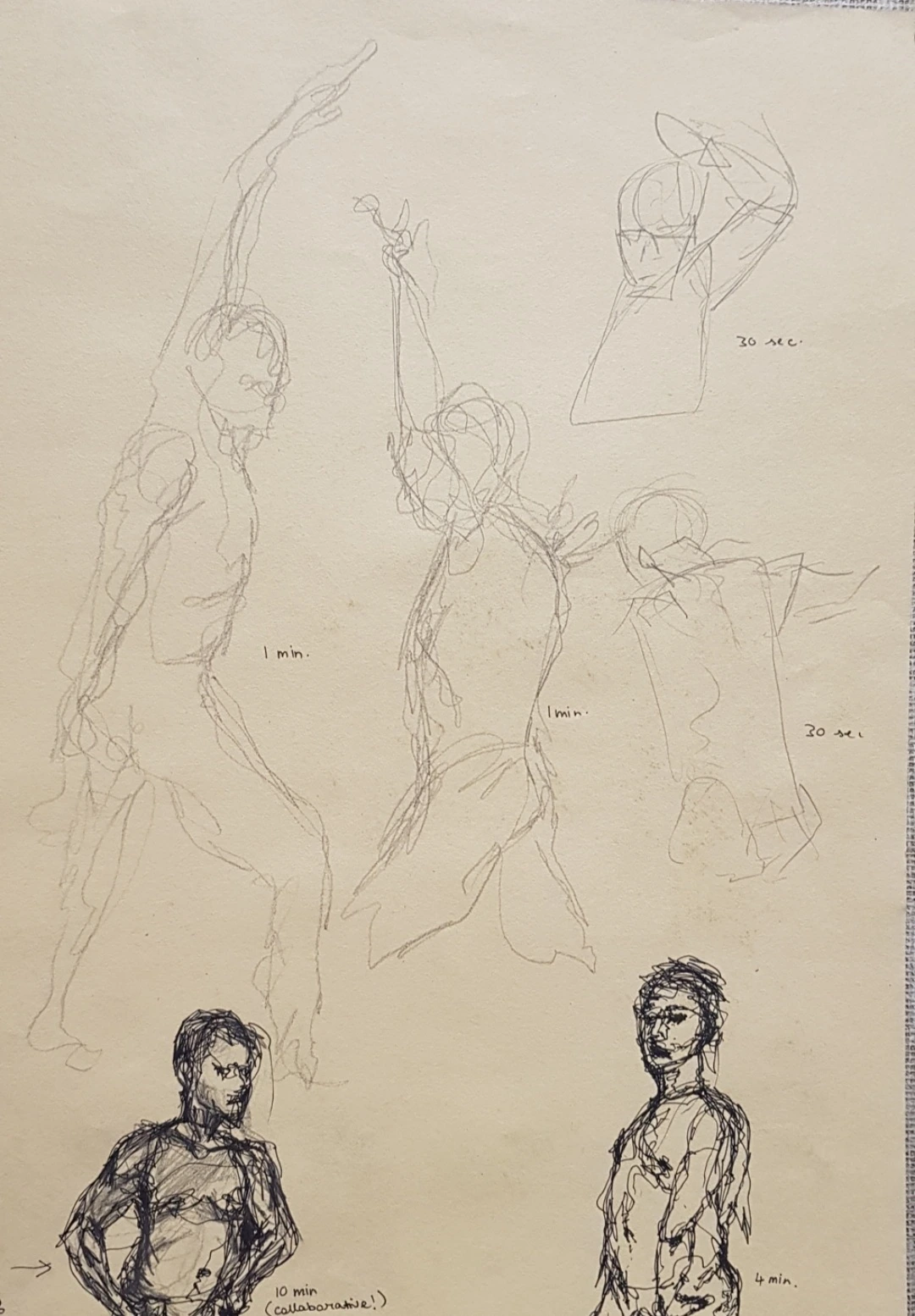 그럼 그 잠깐 사이에 종이 바꾸고 모델분은 포즈 바꾸고 다시 그리고..