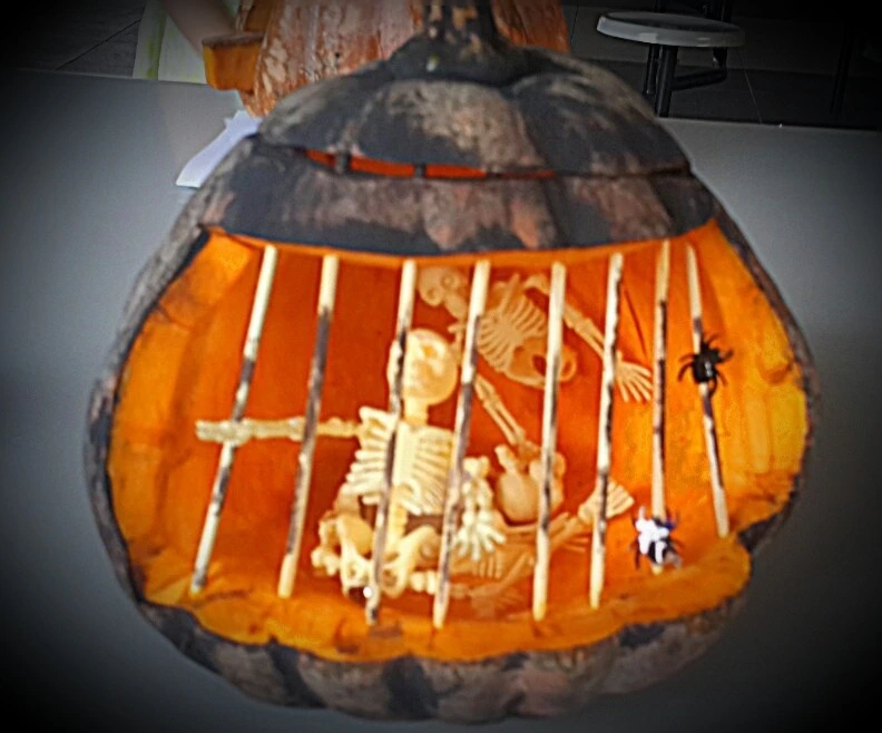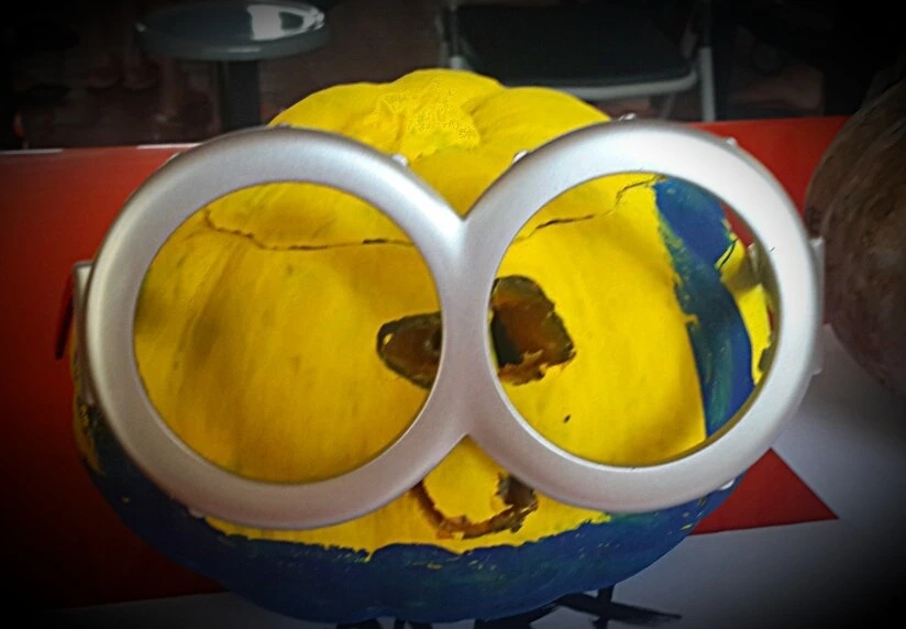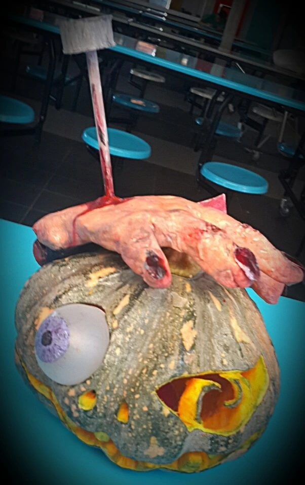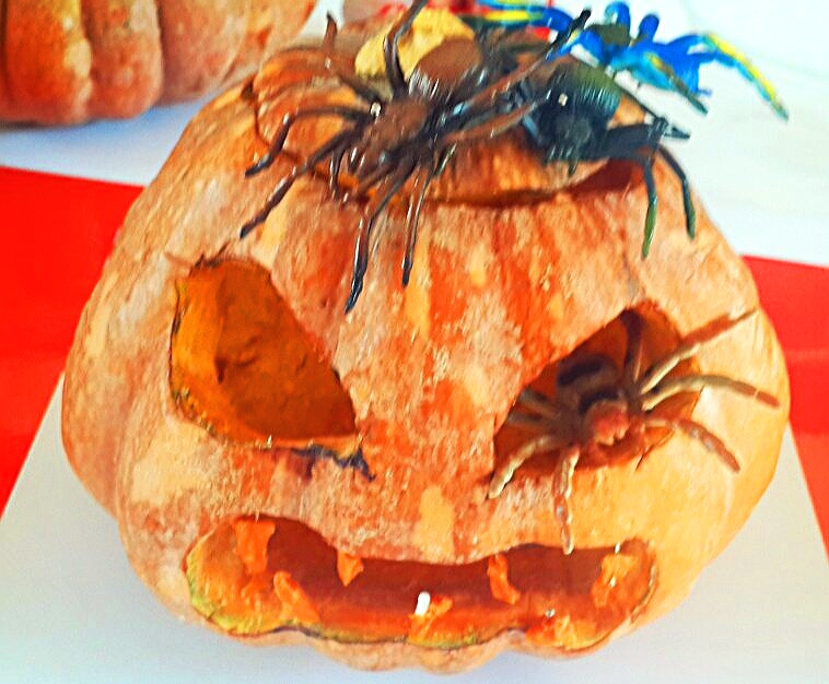 학교로 만든 호박을 깨질세라 조심조심 들고 가 테이블 위에 올려놓자마자..