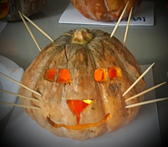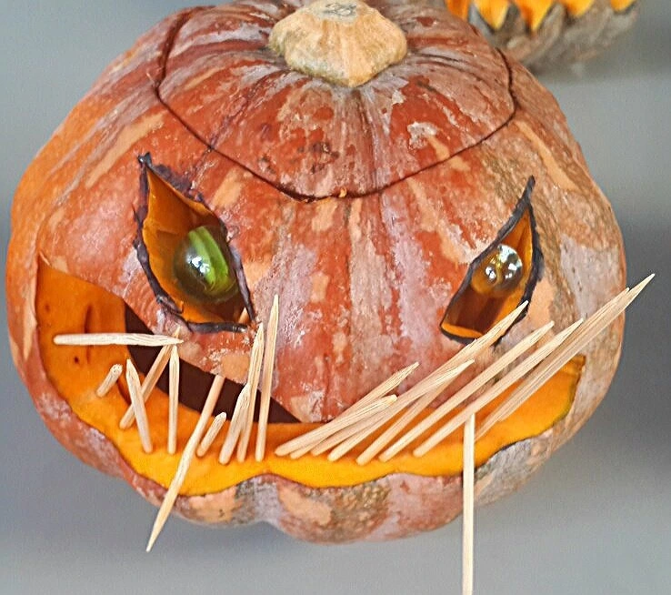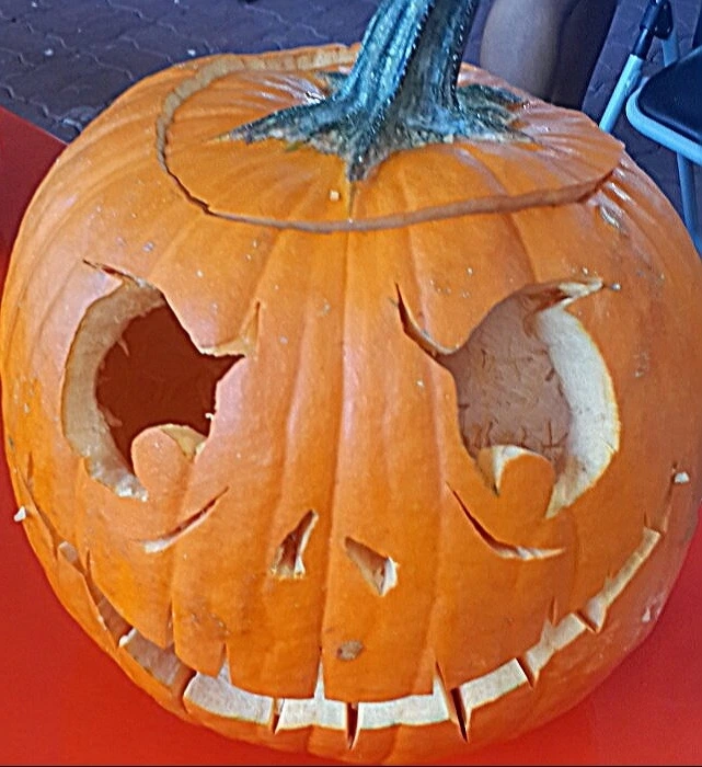 호박 표면도 생각보다 단단하고 울퉁불퉁해서 잘 안 파졌다. 설명만큼 쉽지 않았다. 손 다칠까 조심하며 온 가족이 한참을 씨름한 끝에 드디어 완성..