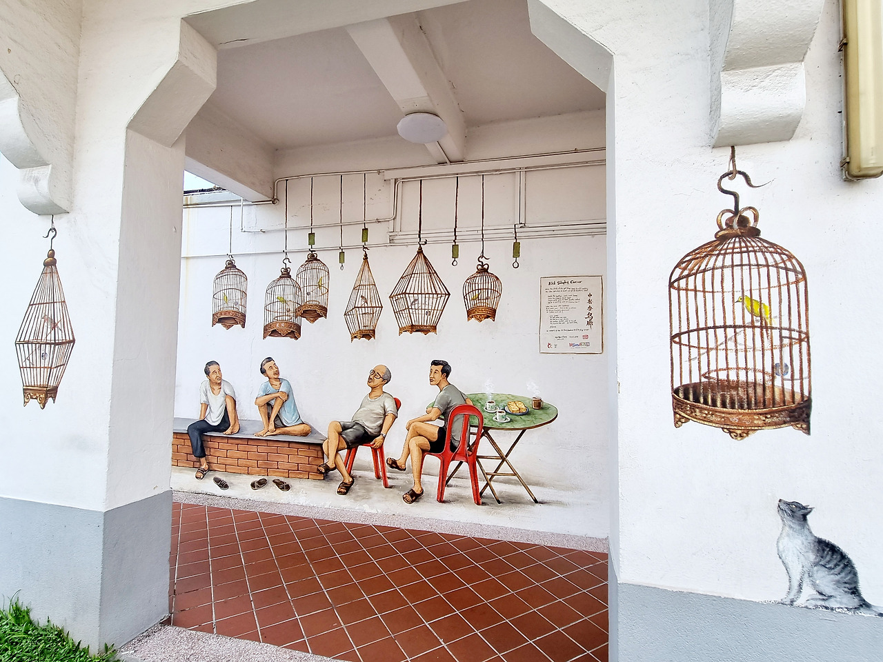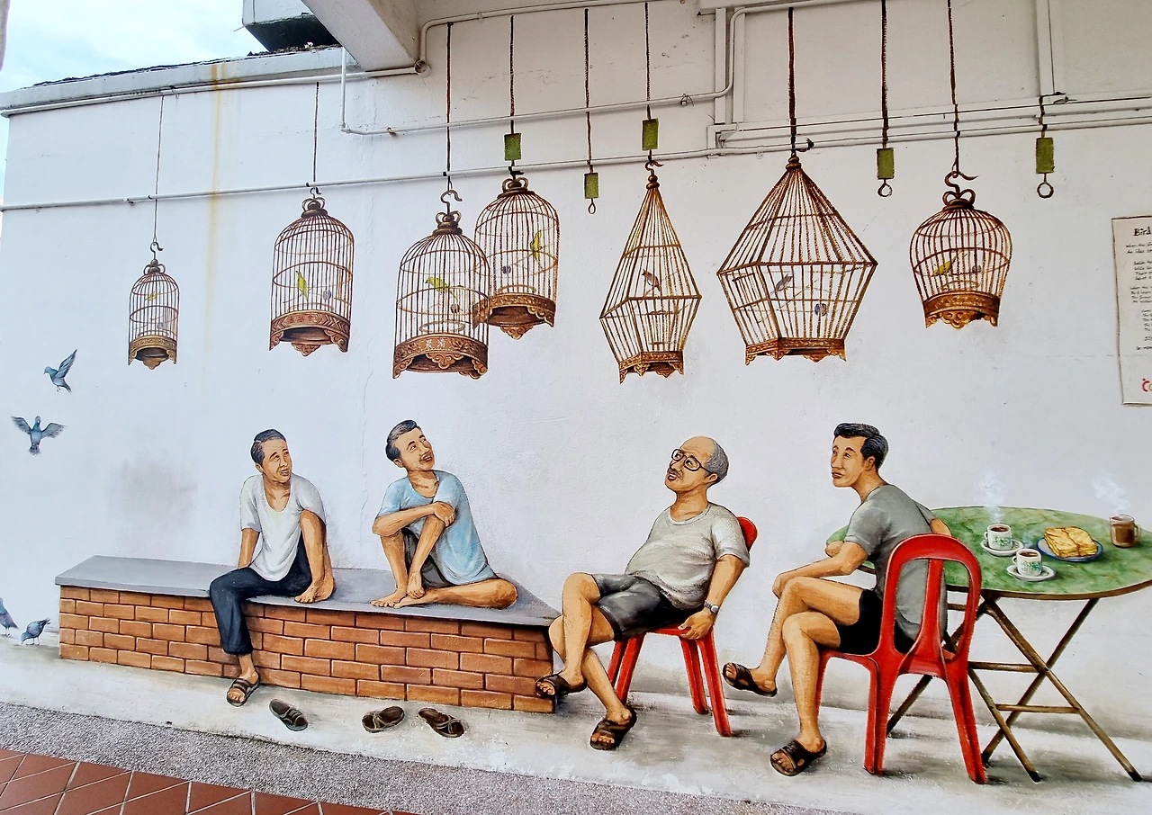 <Bird Singing Corner>에 대한 이야기는 유명한 벽화와 관련된 기사에서 본 적이 있었다. 그 유명한 벽화는 티옹 바루 (Tiong Bahru)에 있다고 했다. 벽화가 불법인 싱가포르에서 어렵게 벽화가 그려진 것에 관한 기사였는데.. 이 지역에서 유년시절을 보낸 입유총 (Yip Yew Chong)이란 분이 사라져 가는 옛 문화를 안타깝게 여겨 오래오래 기억하자는 뜻으로 여러 번 건의 해서 그려진 세 가지 그림 중에 하나가 이 노래하는 새들에 대한 거라고 했다. 그는 이 그림을 그리는 동안 지역 주민들이 먹을 것도 나눠주고 응원도 해 줘서 행복하게 그림을 그렸다고 했다. 화가도 아닌 그가 사랑하는 유년기의 모습과 그들의 문화를 기억하고자 한 마음이 가득 담겨 있을 벽화가 어떤 모습일지 궁금해졌다.