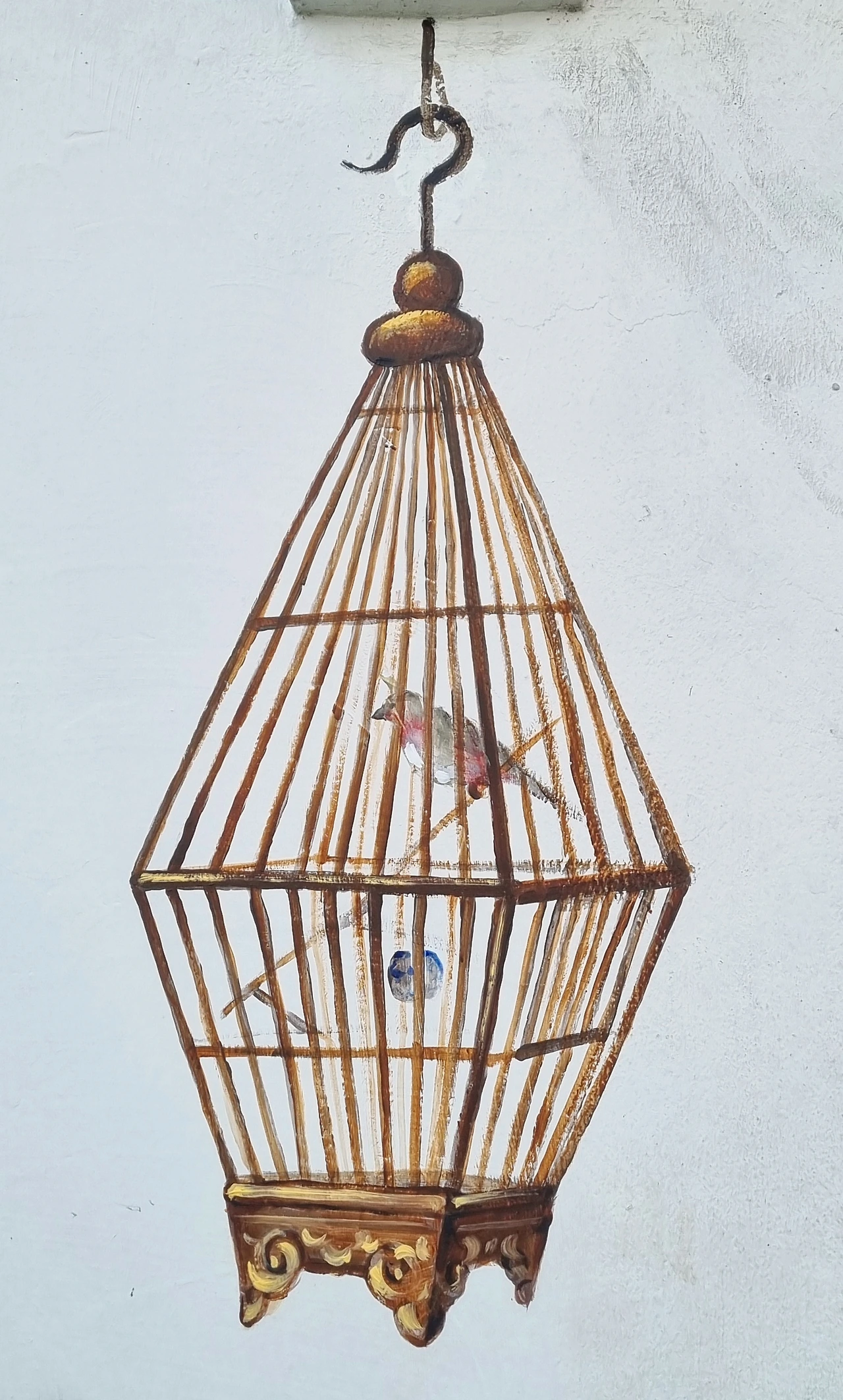 새장은 헷갈리지 않게 구분하기 위해서인지 숫자로 표시된 고리 아래에 매달려 있었다. 엔틱한 디자인의 새장이 참 예뻐서 자세히 들여다보니 그 안엔 도자기로 된 앙증맞은 그릇도 보였다.