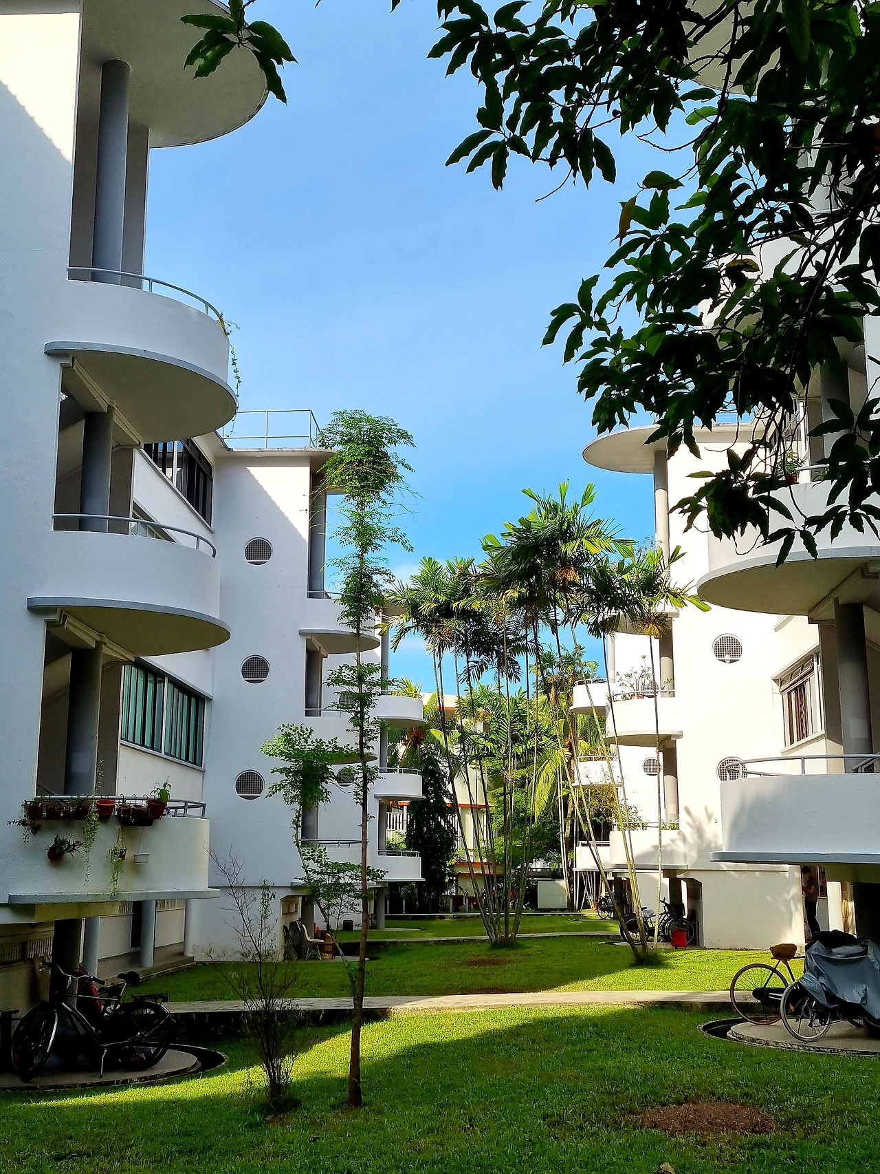티옹 바루는 싱가포르에서 가장 오래된 주택 단지 중 하나로 주변에 맛있고 유명한 카페가 많아 나들이하기 좋은 지역이다. 싱가포르 전역에서 많이 볼 수 있는 HDB지만 티옹 바루에선 낮고 독특한 블록들을 볼 수 있어 시간 여행 온 기분을 느끼게 했다. 대부분 1930년대에 세워졌다는데 낮은 층수와 둥근 베란다와 외부 나선형 계단 등이 있어 아주 색다른 HDB 모습이었다.