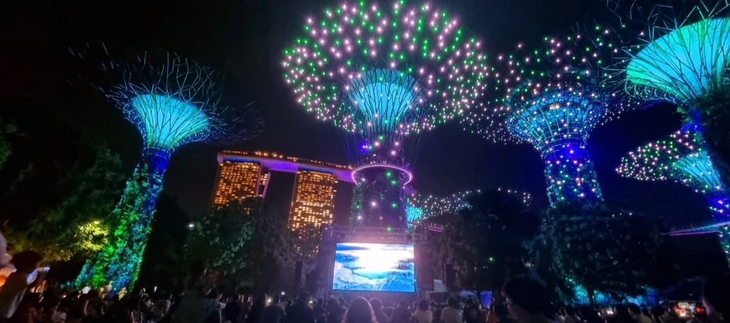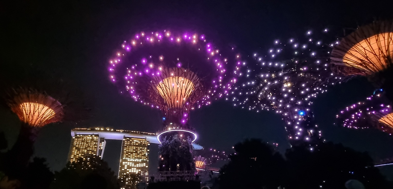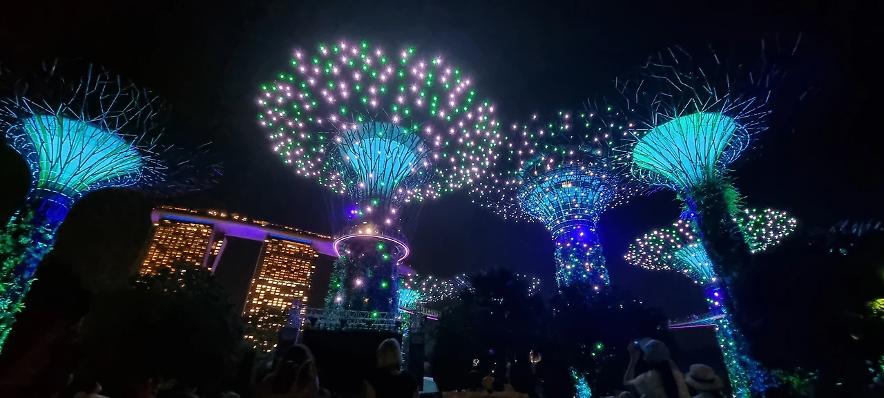 싱가포르를 여행 오면 꼭 봐야 한다는 많은 관광지가 있지만 그중에서도 제일 좋아하는 곳이라 가족이나 지인이 오면 꼭 찾아가는 곳이다. 해 질 녘 시원한 바람이 불어오면 돗자리를 챙겨 가든즈 바이 더 베이를 찾았다. 가든 랩소디 (Garden Rhapsody)라 불리는 아름다운 조명쇼를 보기 위해서였다. 매일 저녁 7시 45분과 8시 45분에 두 차례 무료로 관람할 수 있다.