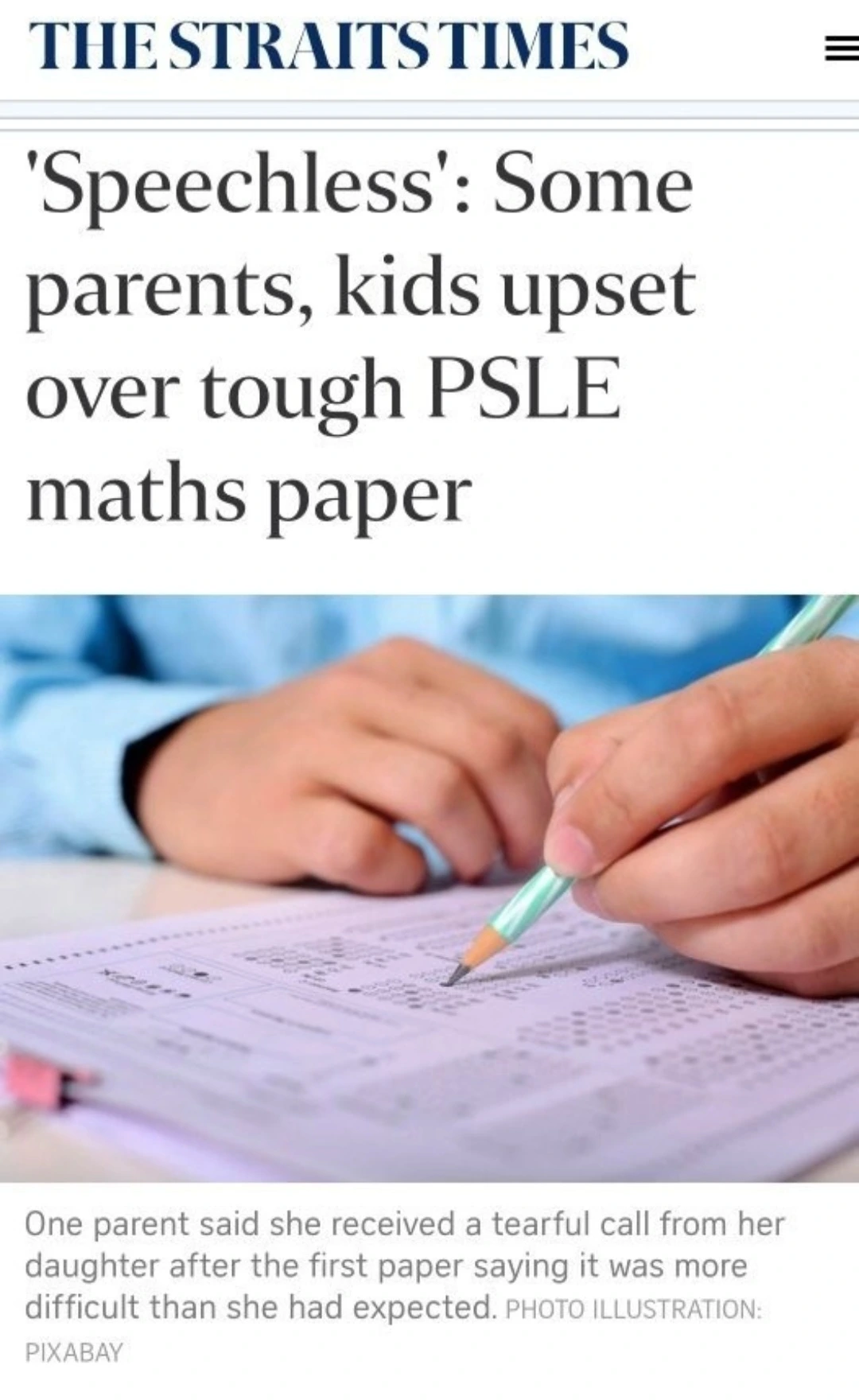 며칠 전 싱가포르에선 올해 친 PSLE (Primary School Leaving Examination, 초등학교 졸업시험)의 성적 결과 발표가 있었다. 이 결과로 중학교를 지원하기에 6학년이 있는 가정에선 매우 중요한 시기이다.