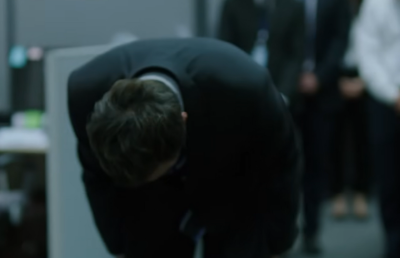 해야 할 일을 했을 뿐인 오 과장은 김 부장에 대한 미안함에 마음이 무겁다. 김 부장이 회사를 떠나는 당일 도열한 부서 사람들. 김 부장은 일일이 악수를 하며 고마움을 전한다. 오 과장 앞에 선 김 부장.